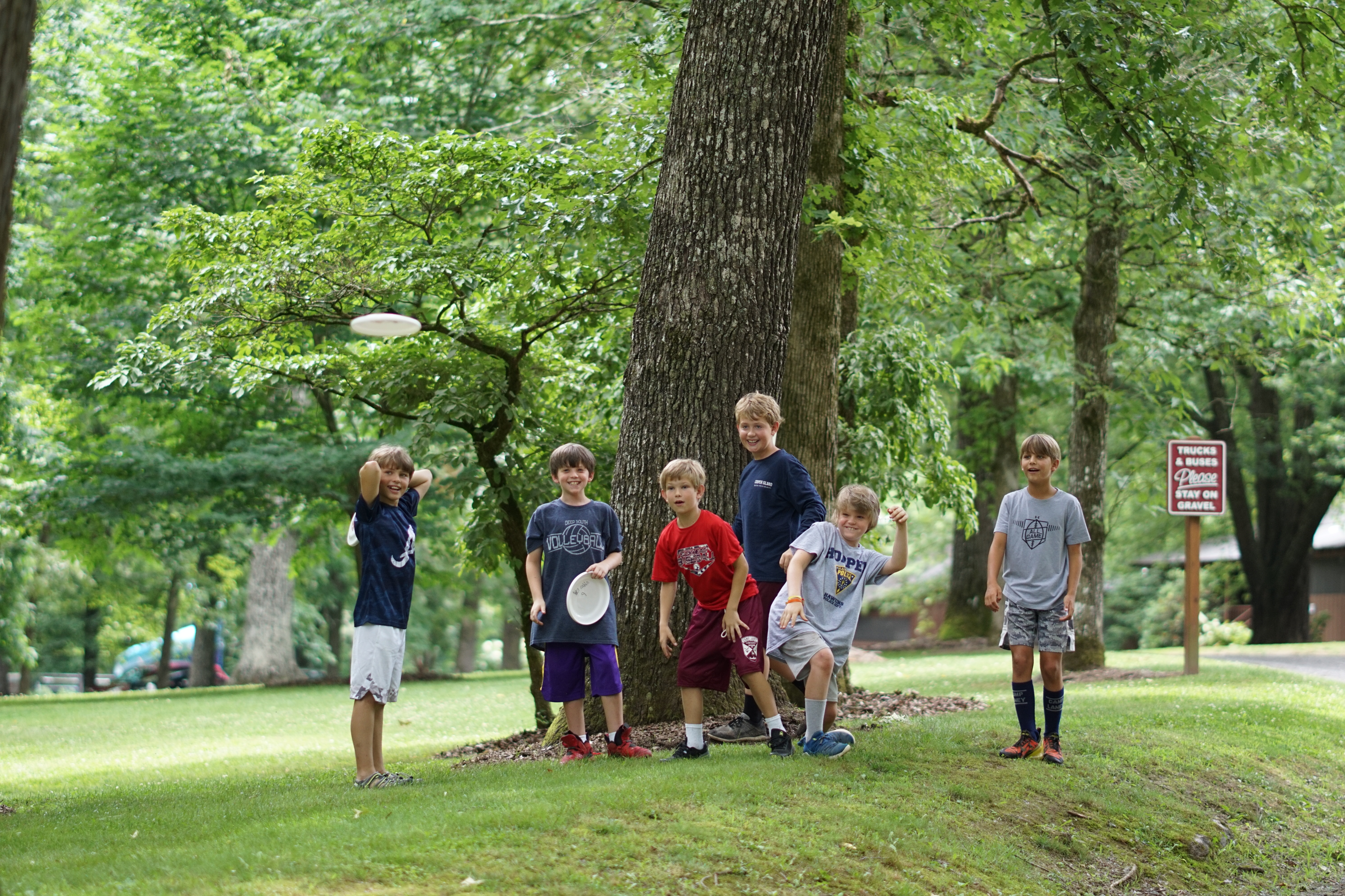During these times the campers may fish, swim, play tennis, badminton, ping-pong, Frisbee golf, basketball, bombardment, pitball, go to the craft cabin/library, or they can just relax.